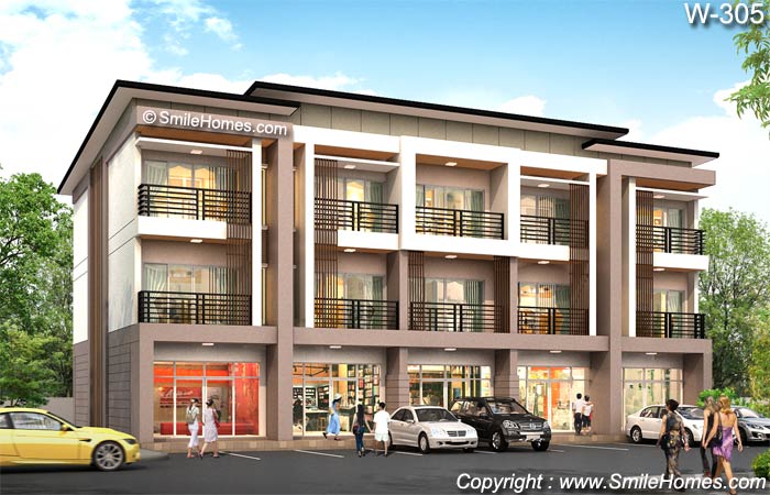 แบบอาคารพาณิชย์ 3 ชั้น จำนวน 5 ห้อง W-305 เหมาะสำหรับนำไปสร้างขาย สำหรับทำเป็น บ้านแถวพักอาศัย หรือร้านค้า หรือทำเป็นสำนักงาน หรือใช้เป็นโฮมออฟฟิศ เป็นอาคารสไตล์ Modern รูปทรงทันสมัย สวยงาม โดดเด่น มีเอกลักษณ์เฉพาะตัว : เป็นอาคารพาณิชย์ 3 ชั้น จำนวน 5 ห้อง โดยตัวอาคารชั้น 1-2 เป็นส่วนสำหรับทำเป็นร้านค้า หรือสำนักงาน ส่วนชั้น 3 เป็นส่วนพักอาศัย มี 2 ห้องนอน 2 ห้องน้ำ รายละเอียดแบบอาคารพาณิชย์ 3 ชั้น จำนวน 5 ห้อง W-305 ชั้น 2 ชั้น 3 หลังคา