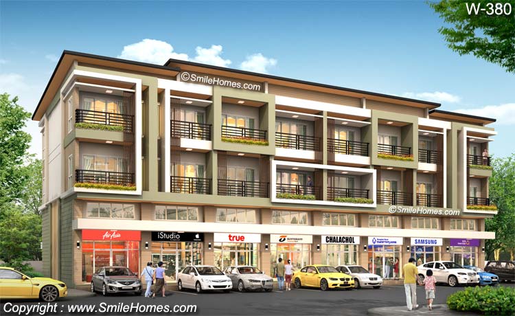 แบบอาคารพาณิชย์ 3 ชั้นครึ่ง จำนวน 8 ห้อง W-380 เหมาะสำหรับนำไปสร้างขาย สำหรับทำเป็น ร้านค้า หรือทำเป็นสำนักงาน หรือใช้เป็นโฮมออฟฟิศ เป็นอาคารสไตล์ Modern รูปทรงทันสมัย สวยงาม โดดเด่น มีเอกลักษณ์เฉพาะตัว : เป็นอาคารพาณิชย์ 3 ชั้นครึ่ง จำนวน 8 ห้อง โดยตัวอาคารชั้น 1-2 เป็นส่วนสำหรับทำเป็นร้านค้า หรือสำนักงาน ส่วนชั้น 3 เป็นส่วนพักอาศัย มี 2 ห้องนอน 3 ห้องน้ำ รายละเอียดแบบอาคารพาณิชย์ 3 ชั้นครึ่ง จำนวน 8 ห้อง W-380 ชั้นลอย ชั้น 2 ชั้น 3 หลังคา