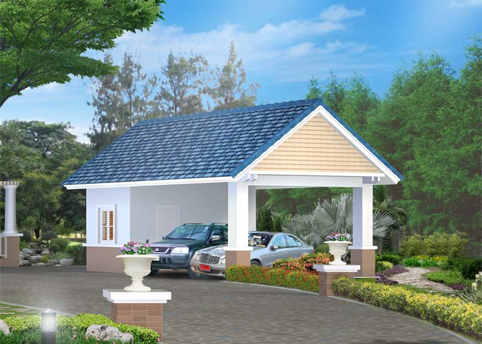 อาคารที่จอดรถ CP-203 จำนวน 2 คัน สไตล์ Contemporary : รูปทรงภายนอกดูโดดเด่น สวยงาม สร้างแยกออกมาจากตัวบ้าน ** สามารถจัดวางตำแหน่งที่จอดรถ ให้เหมาะสมตามรูปทรงที่ดินของท่านได้ **