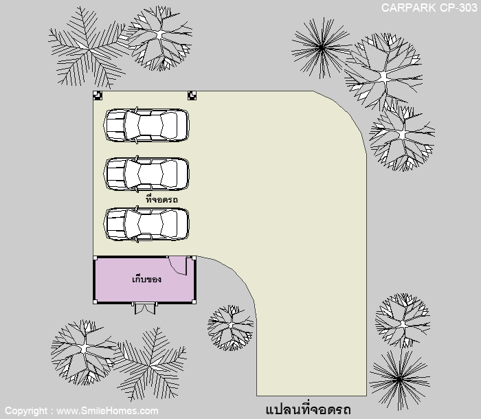| แบบอาคารที่จอดรถ CP-303 ที่จอดรถ 3 คัน พร้อมห้องเก็บของ พื้นที่ใช้สอย 46 ตร.ม.ที่ดินขนาด 30 ตร.ว.ขึ้นไป ตัวอาคาร กว้าง 4.80 ม. ลึก 9.70 ม. ค่าก่อสร้างประมาณ 2.7 - 3.2 แสนบาท ค่าแบบพิมพ์เขียว 5 ชุดพิเศษ 9,900 บาท ( จากราคาปกติ 20,000 บาท) ค่าจัดส่งฟรี |