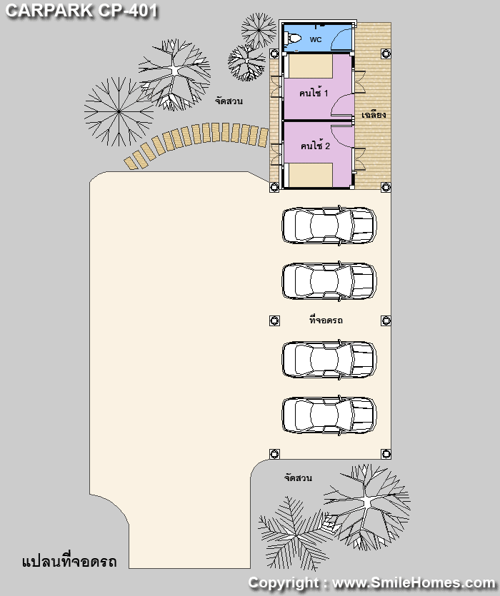 | แบบอาคารที่จอดรถ CP-401 ที่จอดรถ 4 คัน มีห้องคนใช้ และห้องน้ำ พื้นที่ใช้สอย 90 ตร.ม.ที่ดินขนาด 50 ตร.ว.ขึ้นไป ตัวอาคาร กว้าง 5.00 ม. ลึก 18.00 ม. ค่าก่อสร้างประมาณ 5.0 - 7.5 แสนบาท ค่าแบบพิมพ์เขียว 5 ชุดพิเศษ 14,900 บาท ( จากราคาปกติ 30,000 บาท) ค่าจัดส่งฟร |