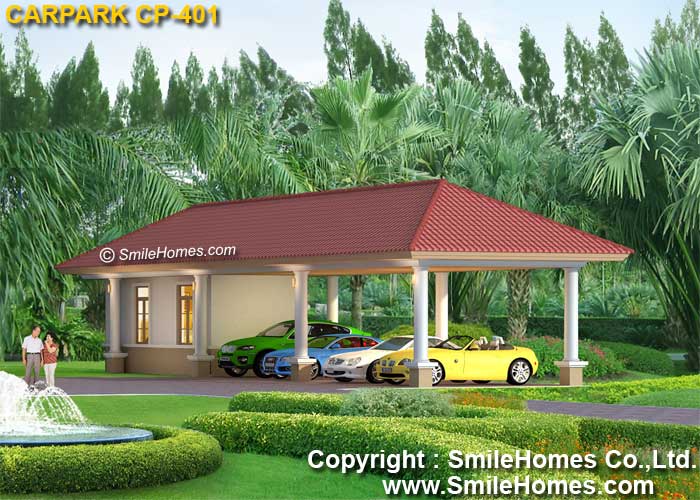 อาคารที่จอดรถ CP-401 จำนวน 4 คัน สไตล์ Neo Classic : รูปทรงภายนอกสวยงาม โดดเด่น สร้างแยกออกมาจากตัวบ้าน ** สามารถจัดวางตำแหน่งที่จอดรถ ให้เหมาะสมตามรูปทรงที่ดินของท่านได้ **