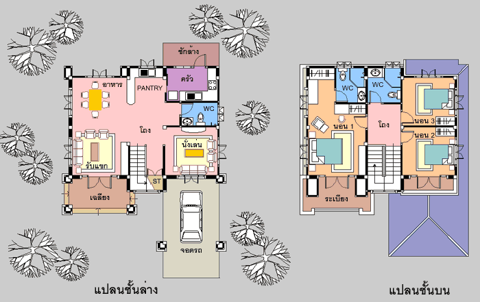 แบบบ้าน A-004 บ้านสไตล์ Modern Tropical รูปทรงทันสมัย สวยงาม โดดเด่น มีเอกลักษณ์ เป็นแบบบ้านอยู่สบาย ใกล้ชิดธรรมชาติ เน้นการประหยัดพลังงาน เป็นบ้าน 3 ห้องนอน 3 ห้องน้ำ ที่จอดรถ 1 คัน ตัวบ้านมีส่วนต่อเนื่อง กับพื้นที่ใช้สอยภายใน และภายนอก เฉลียงด้านหน้ากว้างขวาง ใกล้ส่วนจอดรถ ภายในเป็นห้องรับแขกโปร่งโล่ง ที่มีหน้าต่างขนาดใหญ่ ต่อเนื่องกับส่วนทานอาหาร ห้องครัวเป็นสัดส่วน เชื่อมต่อกับส่วนเตรียมอาหาร Pantry สามารถวางเคาน์เตอร์บาร์ได้ มีห้องนั่งเล่น ซึ่งสามารถปรับเป็นห้องนอนสำหรับผู้สูงอายุ หรือห้องทำงานได้ ด้านหลังมีส่วนซักล้าง ชั้นบน มีห้องนอนใหญ่ สำหรับความเป็นส่วนตัว เพราะมีทั้งส่วนแต่งตัว และห้องน้ำภายใน มีระเบียงด้านหน้า พร้อมห้องนอนอีก 2 ห้อง พร้อมห้องน้ำที่ใช้ร่วมกัน