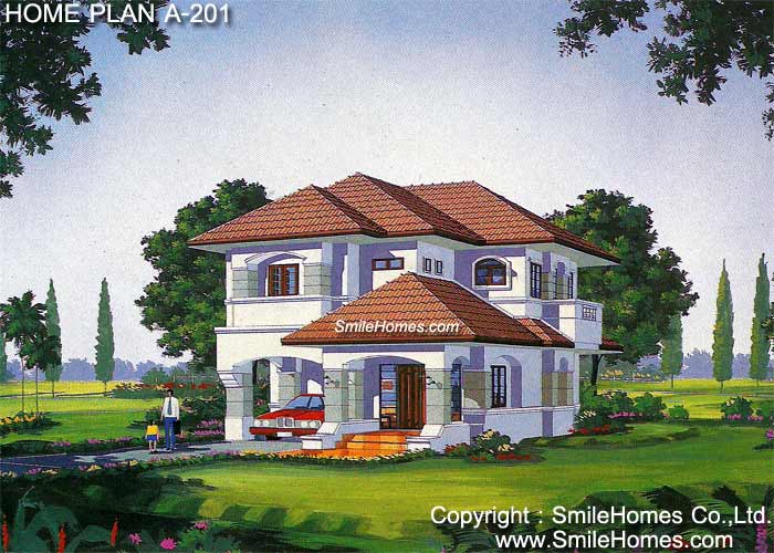 แบบบ้าน A-201 บ้าน 3 ห้องนอน 4 ห้องน้ำ ที่จอดรถ 1 คัน บ้านสไตล์ Modern Contemporary รูปทรงสวยงามให้ความรู้สึกร่มรื่นเย็นสบาย เฉลียงด้านหน้ากว้างขวาง เข้าสู่ภายในซึ่งเป็นห้องรับแขกโปร่งโล่ง ห้องทานอาหารที่สามารถออกไปยังเฉลียงขนาดใหญ่ด้านหลังที่เป็นส่วนตัว ห้องครัวขนาดใหญ่เป็นสัดส่วน มีห้องคนใช้ ชั้นบนมีส่วนนั่งเล่นซึ่งออกระเบียงได้ มีห้องนอนขนาดกลาง 2 ห้อง พร้อมระเบียงส่วนตัวและอีก 1 ห้องนอนใหญ่สำหรับความเป็นส่วนตัว เพราะมีทั้งห้องน้ำขนาดใหญ่ภายใน และระเบียงซึ่งเปิดกว้าง