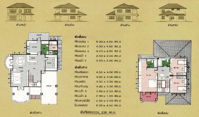 | แบบบ้าน A-203 3 ห้องนอน 4 ห้องน้ำ ที่จอดรถ 1 คัน พื้นที่ใช้สอย 238 ตร.ม.ที่ดินขนาด 60 ตร.ว.ขึ้นไป ตัวบ้านกว้าง 11.00 ม. ลึก 12.50 ม. ราคาค่าก่อสร้างประมาณ 2.3 - 3.0 ล้านบาท ค่าแบบพิมพ์เขียว 5 ชุดพิเศษ 24,900 บาท ( จากราคาปกติ 50,000 บาท) ค่าจัดส่งฟรี |