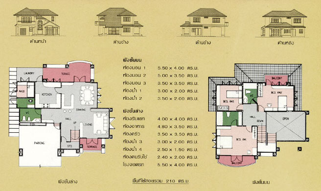 | แบบบ้าน A-204 3 ห้องนอน 4 ห้องน้ำ ที่จอดรถ 2 คัน พื้นที่ใช้สอย 210 ตร.ม.ที่ดินขนาด 60 ตร.ว.ขึ้นไป ตัวบ้านกว้าง 12.50 ม. ลึก 12.50 ม. ราคาค่าก่อสร้างประมาณ 2.1 - 2.7 ล้านบาท ค่าแบบพิมพ์เขียว 5 ชุดพิเศษ 39,900 บาท ( จากราคาปกติ 65,000 บาท) ค่าจัดส่งฟรี |