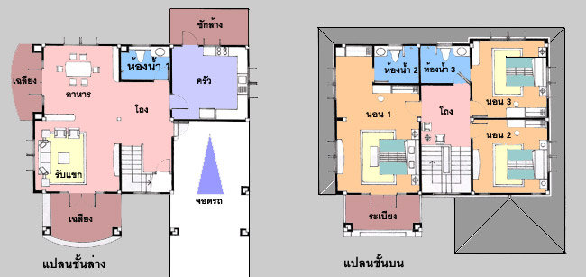 แบบบ้าน A-604: บ้านสไตล์ Garden House แบบบ้านอยู่สบาย ใกล้ชิดธรรมชาติ เน้นการประหยัดพลังงาน เป็นบ้าน 3 ห้องนอน 3 ห้องน้ำ ที่จอดรถ 1 คัน ตัวบ้านมีส่วนต่อเนื่องกับพื้นที่ใช้สอยภายใน และภายนอก รูปทรงสวยงาม ให้ความรู้สึกร่มรื่น เฉลียงด้านหน้ากว้างขวาง ต่อจากส่วนจอดรถ ซึ่งสามารถปรับเป็นห้องนอน หรือห้องทำงานได้ ภายในเป็นห้องรับแขกโปร่งโล่ง ต่อเนื่องกับ ห้องทานอาหารที่สามารถออกไป ยังเฉลียงขนาดใหญ่ด้านข้างที่เป็นส่วนตัว ห้องครัวขนาดใหญ่เป็นสัดส่วน ชั้นบนแบ่งเป็นห้องนอนขนาดกลาง 2 ห้องและอีก 1 ห้องนอนใหญ่สำหรับความเป็นส่วนตัว เพราะมีทั้งห้องน้ำภายในและระเบียงซึ่งเปิดกว้าง สวยงามในรูปแบบเฉพาะตัว
