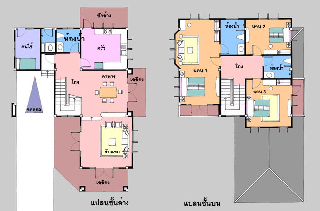 แบบบ้าน A-609 : บ้านสไตล์ Garden House แบบบ้านอยู่สบาย ใกล้ชิดธรรมชาติ เน้นการประหยัดพลังงาน เป็นบ้าน 3 ห้องนอน 4 ห้องน้ำ ที่จอดรถ 1 คัน ตัวบ้านมีส่วนต่อเนื่องกับพื้นที่ใช้สอยภายใน และภายนอก รูปทรงสวยงาม ให้ความรู้สึกร่มรื่น เฉลียงด้านหน้ากว้างขวาง ต่อจากส่วนจอดรถ ซึ่งสามารถปรับเป็นห้องนอน มีห้องทำงานได้ ภายในเป็นห้องรับแขกโปร่งโล่งมีหน้าต่างรอบด้าน ต่อเนื่องกับ ห้องทานอาหาร ที่สามารถออกไป ยังเฉลียงขนาดใหญ่ด้านข้างที่เป็นส่วนตัว ห้องครัวขนาดใหญ่เป็นสัดส่วนพร้อใส่วนซักล้าง มีห้องคนใช้ และห้องน้ำคนใช้ด้านหลัง ชั้นบนแบ่งเป็นห้องนอนขนาดกลาง 2 ห้องและอีก 1 ห้องนอนใหญ่สำหรับความเป็นส่วนตัว เพราะมีทั้งห้องน้ำภายใน และระเบียงซึ่งเปิดกว้าง ห้องนอนใหญ่มี Bay Window ด้านข้างพร้อมหน้าต่างขนาดใหญ่ ห้องนอน 2 มีระเบียง ที่ใช้เป็นที่วางคอมเพรสเซอร์แอร์ได้