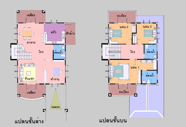แบบบ้าน A-630: บ้านสไตล์ Garden House แบบบ้านอยู่สบาย ใกล้ชิดธรรมชาติ เน้นการประหยัดพลังงาน เป็นบ้าน 3 ห้องนอน 3 ห้องน้ำ ที่จอดรถ 1 คัน ตัวบ้านมีส่วนต่อเนื่องกับพื้นที่ใช้สอยภายใน และภายนอก รูปทรงภายนอกที่โดดเด่น ด้วยทรงหลังคาที่มีเอกลักษณ์ สวยงาม ให้ความรู้สึกร่มรื่น เฉลียงด้านหน้ากว้างขวาง ต่อจากส่วนจอดรถ และชั้นบนเป็นระเบียงกว้าง สวยงามในรูปแบบเฉพาะตัว ภายในเป็นห้องรับแขกโปร่งโล่ง มีห้องทำงาน ต่อเนื่องกับส่วนรับแขก ซึ่งสามารถปรับเป็นห้องนอน หรือห้องนั่งเล่นได้ ห้องทานอาหารที่สามารถออกไป ยังเฉลียงขนาดใหญ่ด้านหลังที่เป็นส่วนตัว ห้องครัวขนาดใหญ่เป็นสัดส่วน มีห้องคนใช้ 1 ห้อง ชั้นบนแบ่งเป็นห้องนอนขนาดกลาง 2 ห้องและอีก 1 ห้องนอนใหญ่สำหรับความเป็นส่วนตัว เพราะมีทั้งห้องน้ำภายในและระเบียงซึ่งเปิดกว้าง