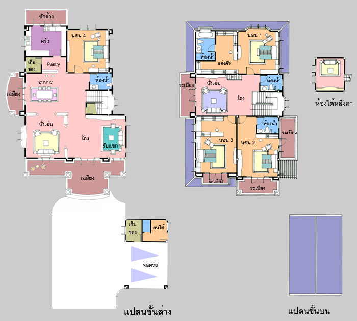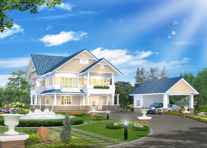แบบบ้าน A-706 บ้านสไตล์ Garden House แบบบ้านอยู่สบาย ใกล้ชิดธรรมชาติ เน้นการประหยัดพลังงาน เป็นบ้านขนาดใหญ่ โอ่งโถง มี 4 ห้องนอน 4 ห้องน้ำ มีอาคารจอดรถ 2 คัน แยกออกมาจากตัวบ้าน ตัวบ้านรูปทรงสวยงามโดดเด่น ตกแต่งภายนอกด้วยไม้ฝา SHERA ให้ความรู้สึกร่มรื่นเย็นสบาย เฉลียงนั่งเล่นภายนอกด้านหน้ากว้างขวาง เข้าสู่ภายในซึ่งเป็นโถง ห้องรับแขก และห้องนั่งเล่นขนาดใหญ่ ที่โปร่งโล่ง มี Bay Window พร้อมหน้าต่างใหญ่ ต่อเนื่องกับ ห้องทานอาหารที่กว้างขวาง ห้องครัวแยกเป็นสัดส่วน มีส่วน Pantry สำหรับเตรียมอาหาร และห้องนอนสำหรับผู้สูงอายุด้านหลัง ชั้นบนมีห้องนั่งเล่นขนาดใหญ่ มีระเบียงภายนอก ห้องนอนใหญ่ สำหรับความเป็นส่วนตัวเพราะมีทั้งส่วนแต่งตัว มีห้องน้ำภายใน และห้องนอนขนาดกลาง 2 ห้องพร้อมห้องน้ำและระเบียงซึ่งเปิดกว้าง มีห้องนั่งเล่นใต้หลังคา
