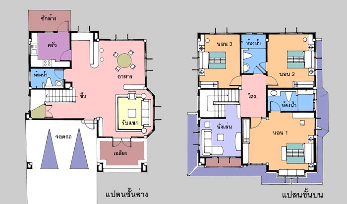 แบบบ้าน A-801 แบบบ้านอยู่สบาย ใกล้ชิดธรรมชาติ เน้นการประหยัดพลังงาน เป็นบ้าน 3 ห้องนอน 3 ห้องน้ำ ที่จอดรถ 2 คัน ตัวบ้านมีส่วนต่อเนื่องกับพื้นที่ใช้สอยภายใน และภายนอก รูปทรงโดดเด่น สวยงาม มีเอกลักษณ์เฉพาะตัว ให้ความรู้สึกร่มรื่น เฉลียงด้านหน้ากว้างขวาง ต่อจากส่วนจอดรถ ภายในเป็นห้องรับแขกโปร่งโล่ง มี Bay window ที่มีหน้าต่างขนาดใหญ่ ต่อเนื่องกับส่วนทานอาหาร ห้องครัวเป็นสัดส่วน เชื่อมต่อกับส่วน Pantry สามารถวางเคาน์เตอร์บาร์ สำหรับเตรียมอาหาร ชั้นบนเล่นระดับ มีห้องนั่งเล่น ดู TV. มีห้องนอนขนาดกลาง 2 ห้องและอีก 1 ห้องนอนใหญ่ สำหรับความเป็นส่วนตัว เพราะมีทั้งห้องน้ำภายในสามารถดัดแปลง ต่อเติมสำหรับการขยายตัวในอนาคตได้