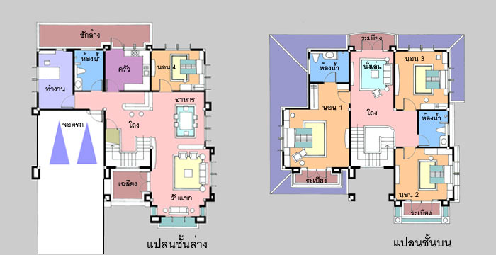แบบบ้าน A-803 บ้าน 4 ห้องนอน 3 ห้องน้ำ ที่จอดรถ 2 คัน บ้านสไตล์ Modern Contemporary รูปทรงสวยงามให้ความรู้สึกร่มรื่นเย็นสบาย เฉลียงด้านหน้ากว้างขวาง โดดเด่น มีเอกลัษณ์ด้วยซุ้มทางเข้าที่สูงโปร่ง 2 ชั้น เข้าสู่ภายในซึ่งเป็นห้องรับแขกขนาดใหญ่ ชั้นล่างโปร่งโล่งต่อเนื่องไปยังห้องทานอาหาร ด้านหลังมีห้องนอนสำหรับผู้สูงอายุที่เป็นส่วนตัว มีห้องทำงาน ชั้นบนมีส่วนนั่งเล่นซึ่งออกระเบียงได้ มีห้องนอนขนาดกลาง 2 ห้อง และอีก 1 ห้องนอนใหญ่ สำหรับความเป็นส่วนตัว เพราะมีทั้งห้องน้ำขนาดใหญ่ภายใน และระเบียงด้านหน้าซึ่งเปิดกว้าง รายละเอียดแบบบ้าน A-803