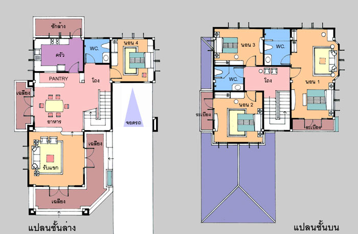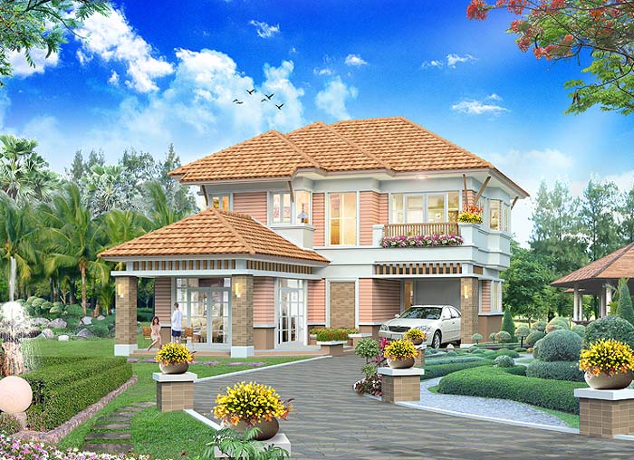 แบบบ้าน A-905 บ้านสไตล์ Tropical Contemporary รูปทรงโดดเด่น สวยงามให้ความรู้สึกร่มรื่นเย็นสบาย ด้วยบ้าน 4 ห้องนอน 3 ห้องน้ำ ที่จอดรถ 1 คัน เป็นบ้านอยู่สบาย ใกล้ชิดธรรมชาติ เน้นการประหยัดพลังงาน เฉลียงด้านหน้า เป็นนอกชานนั่งเล่นกว้างขวาง โดดเด่น มีเอกลักษณ์ ต่อเนื่องจากส่วนจอดรถ ซึ่งสามารถปรับเป็นห้องนอน มีห้องทำงานได้ ภายในเป็นห้องรับแขกโปร่งโล่งมีหน้าต่างรอบด้าน มีการเล่นระดับต่อเนื่องกับ ห้องทานอาหาร ที่สามารถออกไป ยังเฉลียงด้านข้างที่เป็นส่วนตัวได้ ห้องครัวเป็นสัดส่วน พร้อมส่วนเตรียมอาหาร มีห้องนอนสำหรับผู้สูงอายุ หรือสำหรับแขก มีลานซักล้างด้านหลัง ชั้นบนแบ่งเป็นห้องนอนขนาดกลาง 2 ห้องและอีก 1 ห้องนอนใหญ่สำหรับความเป็นส่วนตัว เพราะมีทั้งห้องน้ำภายใน และระเบียงส่วนตัวด้านหน้า ห้องนอนใหญ่มี Bay Window ด้านข้างพร้อมหน้าต่างขนาดใหญ่ และสามารถจัดเป็นห้องแต่งตัว Walk-in Closet ได้ ห้องนอน 2 มีระเบียงด้านข้าง ที่ใช้เป็นที่วางคอมเพรสเซอร์แอร์ได้