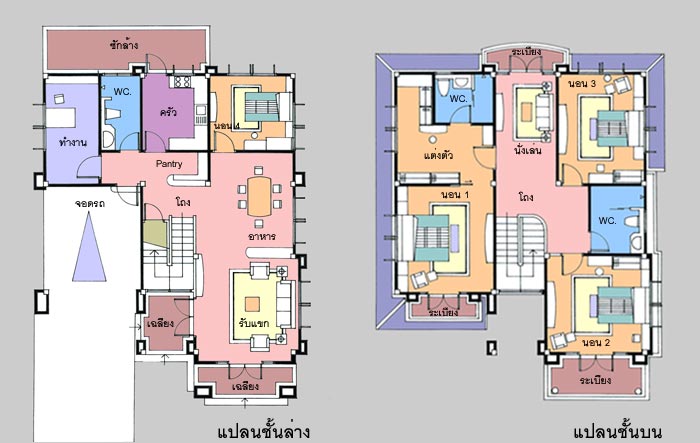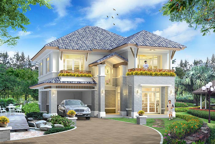 แบบบ้าน A-907 บ้าน 4 ห้องนอน 3 ห้องน้ำ ที่จอดรถ 1 คัน บ้านสไตล์ Tropical Contemporary รูปทรงสวยงามให้ความรู้สึกร่มรื่นเย็นสบาย เฉลียงด้านหน้ากว้างขวาง โดดเด่น มีเอกลัษณ์ด้วยซุ้มทางเข้าที่สูงโปร่ง 2 ชั้น เข้าสู่ภายในซึ่งเป็นห้องรับแขกขนาดใหญ่ ชั้นล่างโปร่งโล่ง ต่อเนื่องไปยังห้องทานอาหาร ด้านหลังมีห้องนอนสำหรับผู้สูงอายุที่เป็นส่วนตัว มีห้องทำงาน ชั้นบนมีส่วนนั่งเล่น ซึ่งออกระเบียงได้ มีห้องนอนขนาดกลาง 2 ห้อง และอีก 1 ห้องนอนใหญ่ สำหรับความเป็นส่วนตัว เพราะมีทั้งห้องแต่งตัว Walk-in Closet และห้องน้ำภายใน และระเบียงด้านหน้าซึ่งเปิดกว้าง