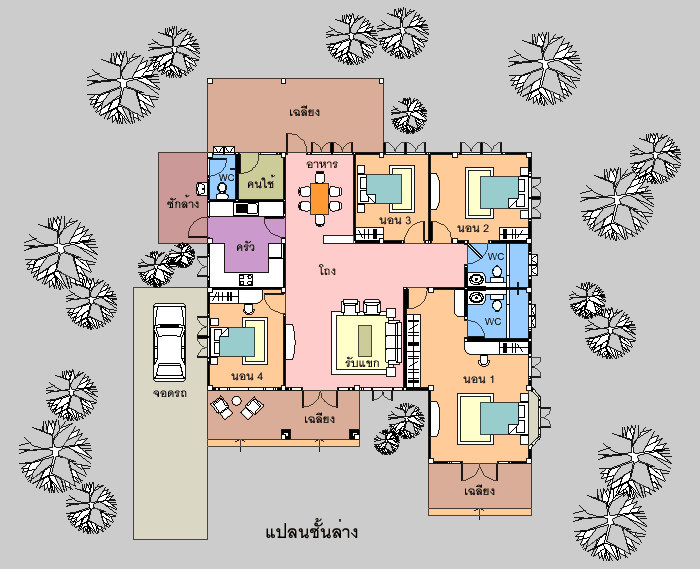 - ที่จอดรถ 1 คัน ** สามารถแยกเป็นส่วนอาคารจอดรถภายนอกได้