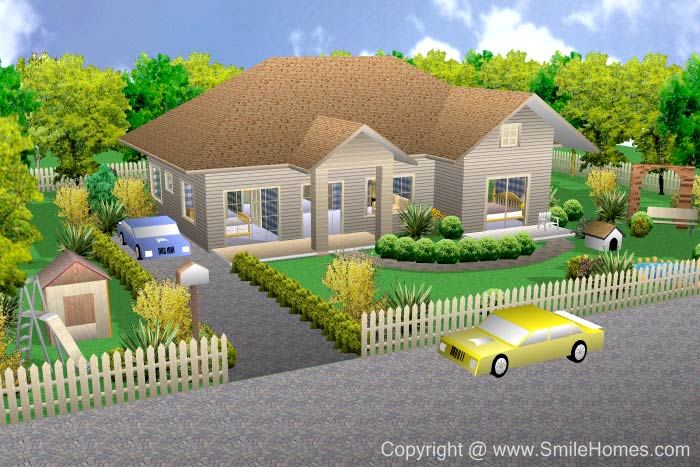 บ้านชั้นเดียว ขนาดปานกลาง แต่เพียบพร้อมด้วยประโยชน์ใช้สอย มี 4 ห้องนอน 3 ห้องน้ำ รูปทรงภายนอกสวยงาม ให้ความรู้สึกร่มรื่น มีเฉลียงด้านหน้าขนาดใหญ่ ใช้เป็นที่วางชุดนั่งเล่นนอกชานได้ ภายในตัวบ้านเป็นห้องโถงกว้าง จัดเป็นส่วนรับแขก และทานอาหาร แยกเป็นสัดส่วน สามารถจัดวางเฟอร์นิเจอร์ แบ่งส่วนการใช้สอย ได้อย่างเหมาะสม สร้างความรู้สึกโปร่งโล่งด้วยชุดหน้าต่างอลูมิเนียม ในบรรยากาศที่เป็นกันเอง มีครัวด้านหลัง และส่วนซักรีดภายนอก ซึ่งสามารถใช้เป็นครัวไทยได้ มีห้องนอนใหญ่ พร้อมห้องน้ำภายใน และห้องนอนขนาดกลางอีก 3 ห้อง พร้อมห้องน้ำส่วนกลาง