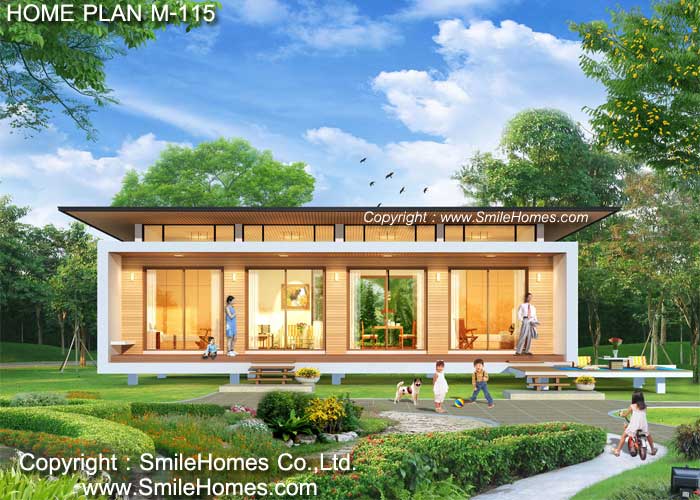 | แบบบ้านชั้นเดียว M-115 2 ห้องนอน 2 ห้องน้ำ พื้นที่ใช้สอยภายใน 152 ตร.ม. ขนาดตัวบ้านกว้าง 15.20 ม. ลึก 9.60 ม. ที่ดินขนาด 65 ตร.ว.ขึ้นไป ค่าก่อสร้างประมาณ 1.6 - 2.2 ล้านบาท ค่าแบบพิมพ์เขียว 5 ชุดพิเศษ 34,900 บาท ( จากราคาปกติ 70,000 บาท) ค่าจัดส่งฟรี |