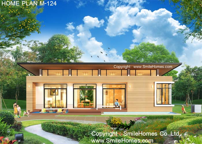 | แบบบ้านชั้นเดียว M-124 4 ห้องนอน 3 ห้องน้ำ พื้นที่ใช้สอย 220 ตร.ม. ขนาดตัวบ้านกว้าง 14.20 ม. ลึก 14.50 ม. ที่ดินขนาด 85 ตร.ว.ขึ้นไป ค่าก่อสร้างประมาณ 2.3 - 3.0 ล้านบาท ค่าแบบพิมพ์เขียว 5 ชุดพิเศษ 29,900 บาท ( จากราคาปกติ 75,000 บาท) ค่าจัดส่งฟรี |