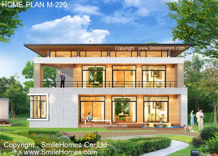 | แบบบ้าน 2 ชั้น M-220 3 ห้องนอน 4 ห้องน้ำ พื้นที่ใช้สอยภายใน 336 ตร.ม. ขนาดตัวบ้านกว้าง 17.20 ม. ลึก 13.50 ม. ที่ดินขนาด 90 ตร.ว.ขึ้นไป ค่าก่อสร้างประมาณ 4.5 - 5.5 ล้านบาท ค่าแบบพิมพ์เขียว 5 ชุดพิเศษ 29,900 บาท ( จากราคาปกติ 120,000 บาท) ค่าจัดส่งฟรี |