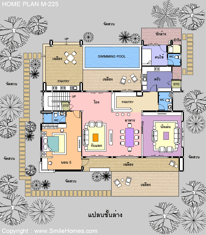 - ในแบบชุดมาตรฐานจะไม่มีส่วนสระว่ายน้ำด้านหน้า ถ้าต้องการแบบพิมพ์เขียวรายละเอียดสระว่ายน้ำ คิดค่าแบบเพิ่ม 20,000 บาท