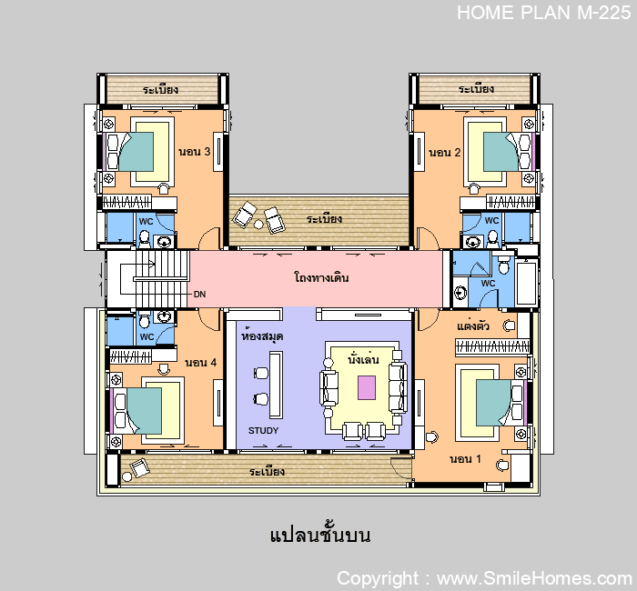 - ห้องสมุด และส่วน Study Room ( ขนาด 5.00 x 5.50 ม.) ** ออกระเบียงภายนอกได้ **