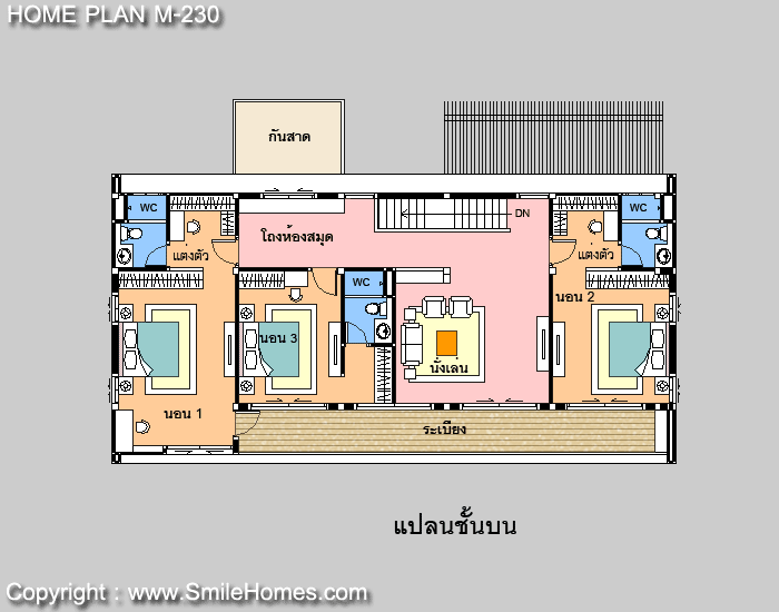- ส่วนทางเดินด้านหลัง ( ขนาด 1.20 x 5.80 ม.) ** ทำเป็นส่วนโถงห้องสมุด โดยทำตู้หนังสือขนาดใหญ่ สูงจากพื้นถึงฝ้าเพดานได้ **