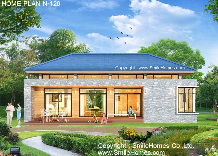 | แบบบ้านชั้นเดียว N-120 2 ห้องนอน 2 ห้องน้ำ พื้นที่ใช้สอย 140 ตร.ม. ขนาดตัวบ้านกว้าง 14.20 ม. ลึก 9.70 ม. ที่ดินขนาด 65 ตร.ว.ขึ้นไป ค่าก่อสร้างประมาณ 1.3 - 1.8 ล้านบาท ค่าแบบพิมพ์เขียว 5 ชุดพิเศษ 34,900 บาท ( จากราคาปกติ 65,000 บาท) ค่าจัดส่งฟรี |