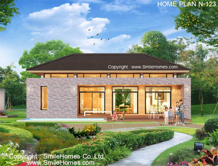 | แบบบ้านชั้นเดียว N-123 3 ห้องนอน 4 ห้องน้ำ พื้นที่ใช้สอย 210 ตร.ม. ขนาดตัวบ้านกว้าง 14.20 ม. ลึก 14.50 ม. ที่ดินขนาด 85 ตร.ว.ขึ้นไป ค่าก่อสร้างประมาณ 2.3 - 3.0 ล้านบาท ค่าแบบพิมพ์เขียว 5 ชุดพิเศษ 39,900 บาท ( จากราคาปกติ 75,000 บาท) ค่าจัดส่งฟรี |