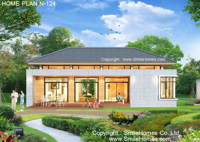 | แบบบ้านชั้นเดียว N-124 4 ห้องนอน 3 ห้องน้ำ พื้นที่ใช้สอย 220 ตร.ม. ขนาดตัวบ้านกว้าง 14.20 ม. ลึก 14.50 ม. ที่ดินขนาด 85 ตร.ว.ขึ้นไป ค่าก่อสร้างประมาณ 2.3 - 3.0 ล้านบาท ค่าแบบพิมพ์เขียว 5 ชุดพิเศษ 29,900 บาท ( จากราคาปกติ 75,000 บาท) ค่าจัดส่งฟรี |
