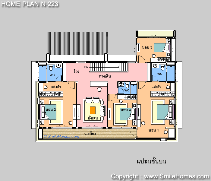 - ส่วน Study Room สำหรับอ่านหนังสือ หรือเล่น Internet ( ขนาด 2.20 x 3.00 ม.)