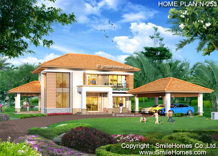 | แบบบ้าน 2 ชั้น N-253 4 ห้องนอน 4 ห้องน้ำ ที่จอดรถ 3 คัน พื้นที่ใช้สอย 305 ตร.ม. ขนาดตัวบ้านกว้าง 20.90 ม. ลึก 18.40 ม. ที่ดินขนาด 140 ตร.ว.ขึ้นไป ค่าก่อสร้างประมาณ 3.5 - 4.4 ล้านบาท ค่าแบบพิมพ์เขียว 5 ชุดพิเศษ 29,900 บาท ( จากราคาปกติ 80,000 บาท) ลค่าจัดส่งฟรี |