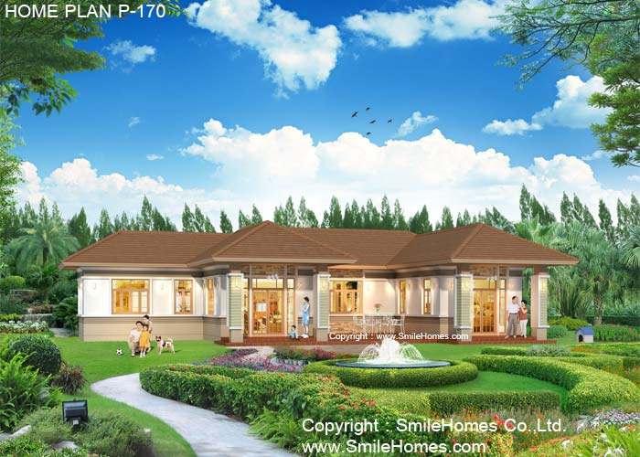 | แบบบ้านชั้นเดียว P-170 3 ห้องนอน 4 ห้องน้ำ พื้นที่ใช้สอย 183 ตร.ม. ขนาดตัวบ้านกว้าง 19.70 ม. ลึก 14.20 ม. ที่ดินขนาด 110 ตร.ว.ขึ้นไป ค่าก่อสร้างประมาณ 2.2 - 2.8 ล้านบาท ค่าแบบพิมพ์เขียว 5 ชุดพิเศษ 39,900 บาท ( จากราคาปกติ 90,000 บาท) ค่าจัดส่งฟรี |