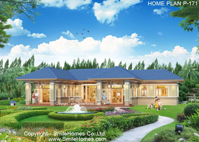 | แบบบ้านชั้นเดียว P-171 3 ห้องนอน 4 ห้องน้ำ พื้นที่ใช้สอย 193 ตร.ม. ขนาดตัวบ้านกว้าง 19.70 ม. ลึก 14.70 ม. ที่ดินขนาด 110 ตารางวาขึ้นไป ค่าก่อสร้างประมาณ 2.3 - 2.9 ล้านบาท ค่าแบบพิมพ์เขียว 5 ชุดพิเศษ 29,900 บาท ( จากราคาปกติ 90,000 บาท) ค่าจัดส่งฟรี |