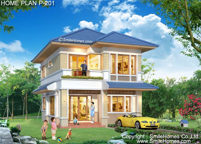 แบบบ้าน P-201 แบบบ้านสไตล์ Contemporary : แบบบ้านอยู่สบาย ใกล้ชิดธรรมชาติ เน้นการประหยัดพลังงาน เหมาะสำหรับที่ดินหน้าแคบ รูปทรงตัวบ้านโดดเด่น สวยงาม มีเอกลักษณ์เฉพาะตัว ให้ความรู้สึกร่มรื่น เป็นบ้าน 4 ห้องนอน 2 ห้องน้ำ มีเฉลียงด้านหน้า เข้าสู่ภายในซึ่งเป็นห้องรับแขกโปร่งโล่ง ต่อเนื่องกับ ห้องทานอาหาร พร้อมส่วนเตรียมอาหาร Pantry และห้องครัวเป็นสัดส่วน มีห้องนอนที่ชั้นล่าง สำหรับแขก ผรือผู้สูงอายุ ชั้นบนมีห้องนอนใหญ่ พร้อมส่วนแต่งตัว และเฉลียงด้านหน้า มีห้องนอนขนาดกลางอีก 2 ห้อง พร้อมห้องน้ำส่วนกลาง รายละเอียดแบบบ้าน P-201 ชั้นสอง