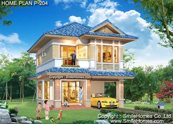 แบบบ้าน P-204 แบบบ้านสไตล์ Contemporary : แบบบ้านอยู่สบาย ใกล้ชิดธรรมชาติ เน้นการประหยัดพลังงาน รูปทรงโดดเด่น สวยงาม มีเอกลักษณ์เฉพาะตัว ให้ความรู้สึกร่มรื่น เป็นบ้าน 3 ห้องนอน 4 ห้องน้ำ ที่จอดรถ 1 คัน จากที่จอดรถ มีเฉลียงด้านหน้า เข้าสู่ภายใน ซึ่งเป็นห้องรับแขกโปร่งโล่ง มี Bay window ที่เป็นหน้าต่างขนาดใหญ ต่อเนื่องกับห้องทานอาหาร พร้อมส่วนเตรียมอาหาร Pantry และห้องครัวเป็นสัดส่วน พร้อมห้องเก็บของ ชั้นบนห้องนอนใหญ่ ที่มีห้องน้ำในตัว พร้อมส่วนแต่งตัว และเฉลียงด้านหน้า มีห้องนอนขนาดกลางอีก 2 ห้อง พร้อมห้องน้ำในตัว รายละเอียดแบบบ้าน P-204 ชั้นสอง