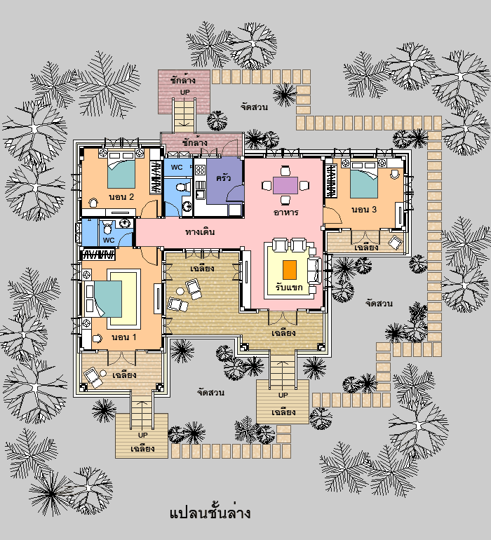 บ้านสไตล์ Contemporary แบบบ้านอยู่สบาย ใกล้ชิดธรรมชาติ เน้นการประหยัดพลังงาน เป็นบ้านยกระดับจากพื้นดิน 1.20 ม. บ้านชั้นเดียว มี 3 ห้องนอน 2 ห้องน้ำ รูปทรงภายนอกสวยงาม เน้นทางเข้าบ้าน ด้วยซุ้มหลังคาทางขึ้นเฉลียงหน้าบ้าน ตกแต่งผิวผนังด้วยไม้ฝา Shera ด้านข้างเป็นเฉลียงนอกชาน นั่งเล่น ภายในมีส่วนรับแขกโปร่งโล่ง ต่อเนื่องกับ ส่วนทานอาหาร พร้อมห้องครัว แยกเป็นสัดส่วน และส่วนซักล้างด้านหลัง มีห้องนอนใหญ่ ที่กว้างขวาง พร้อมห้องน้ำในตัว พร้อมระเบียงส่วนตัวด้านหน้า มีห้องนอนอีก 2 ห้อง และส่วนทางเดิน ชั้นล่าง