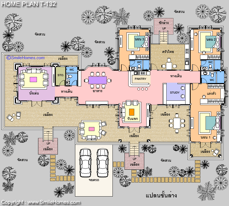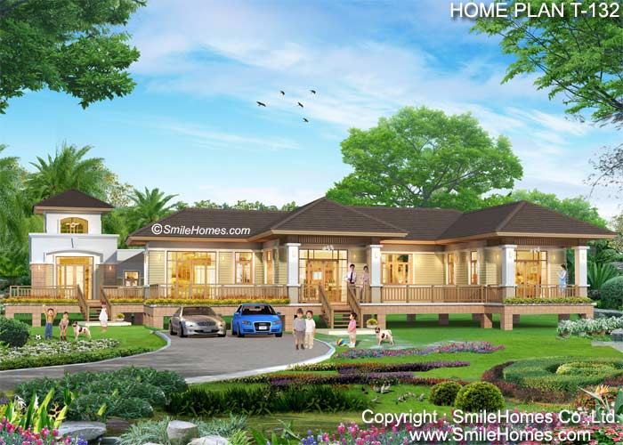 | แบบบ้านชั้นเดียว T-132 3 ห้องนอน 4 ห้องน้ำ พื้นที่ใช้สอย 375 ตร.ม. ขนาดตัวบ้านกว้าง 30.00 ม. ลึก 17.80 ม. ที่ดินขนาด 185 ตร.ว.ขึ้นไป ค่าก่อสร้างประมาณ 4.4 - 5.4 ล้านบาท ค่าแบบพิมพ์เขียว 5 ชุดพิเศษ 44,900 บาท ( จากราคาปกติ 95,000 บาท) ค่าจัดส่งฟรี |