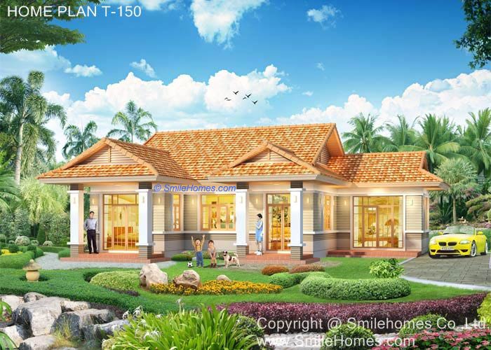 | แบบบ้านชั้นเดียว T-150 4 ห้องนอน 1 ห้องน้ำ พื้นที่ใช้สอย 130 ตร.ม. ขนาดตัวบ้านกว้าง 14.20 ม. ลึก 11.70 ม. ที่ดินขนาด 70 ตร.ว.ขึ้นไป ค่าก่อสร้างประมาณ 1.3 - 1.8 ล้านบาท ค่าแบบพิมพ์เขียว 5 ชุดพิเศษ 19,900 บาท ( จากราคาปกติ 60,000 บาท) ค่าจัดส่งฟรี |