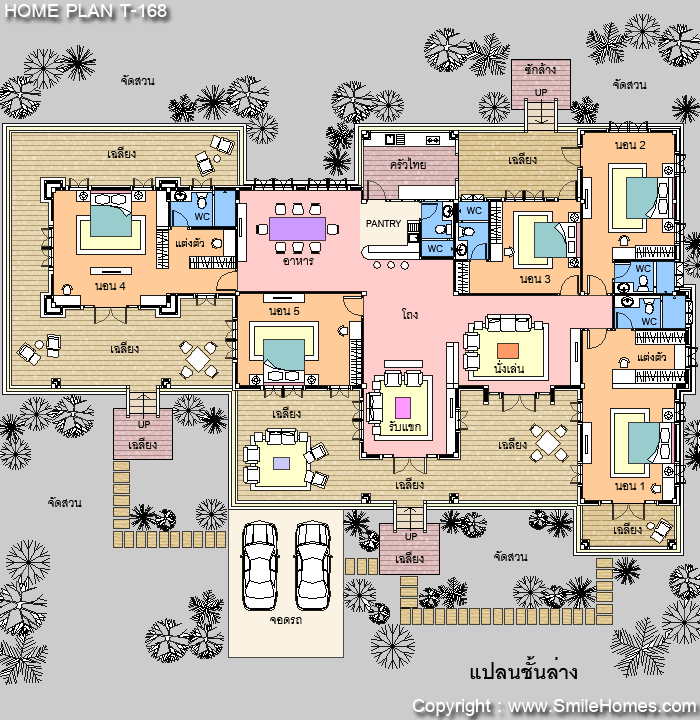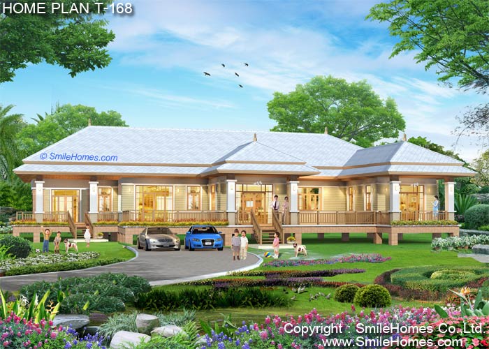 | แบบบ้านชั้นเดียว T-168 5 ห้องนอน 5 ห้องน้ำ พื้นที่ใช้สอย 436 ตร.ม. ขนาดตัวบ้านกว้าง 29.50 ม. ลึก 18.20 ม. ที่ดินขนาด 190 ตร.ว.ขึ้นไป ค่าก่อสร้างประมาณ 5.4 - 6.6 ล้านบาท ค่าแบบพิมพ์เขียว 5 ชุดพิเศษ 64,900 บาท ( จากราคาปกติ 130,000 บาท) ค่าจัดส่งฟรี |