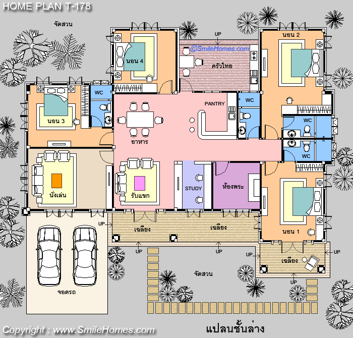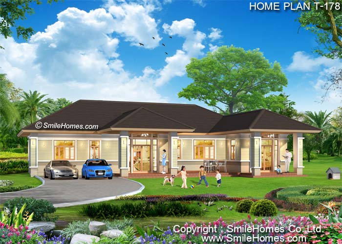 | แบบบ้านชั้นเดียว T-178 4 ห้องนอน 4 ห้องน้ำ พื้นที่ใช้สอย 240 ตร.ม. ขนาดตัวบ้านกว้าง 19.70 ม. ลึก 15.70 ม. ที่ดินขนาด 115 ตร.ว.ขึ้นไป ค่าก่อสร้างประมาณ 2.9 - 3.6 ล้านบาท ค่าแบบพิมพ์เขียว 5 ชุดพิเศษ 29,900 บาท ( จากราคาปกติ 95,000 บาท) ค่าจัดส่งฟรี |