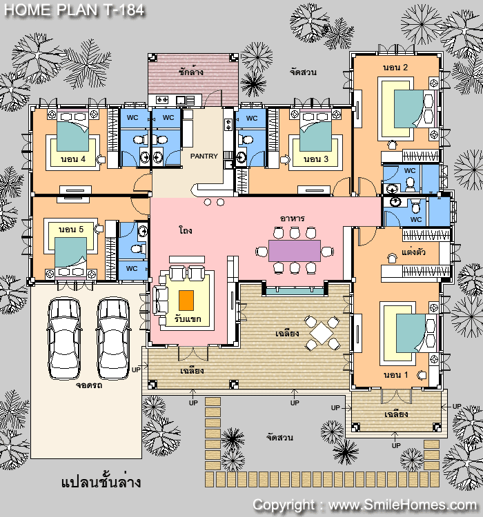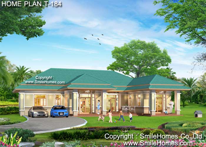 | แบบบ้านชั้นเดียว T-184 5 ห้องนอน 6 ห้องน้ำ ที่จอดรถ 2 คัน พื้นที่ใช้สอย 255 ตร.ม. ขนาดตัวบ้านกว้าง 19.90 ม. ลึก 17.70 ม. ที่ดินขนาด 130 ตร.ว.ขึ้นไป ค่าก่อสร้างประมาณ 3.0 - 3.9 ล้านบาท ค่าแบบพิมพ์เขียว 5 ชุดพิเศษ 34,900 บาท ( จากราคาปกติ 95,000 บาท) ค่าจัดส่งฟรี |