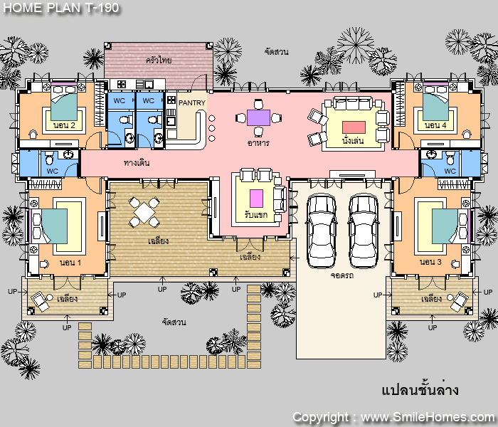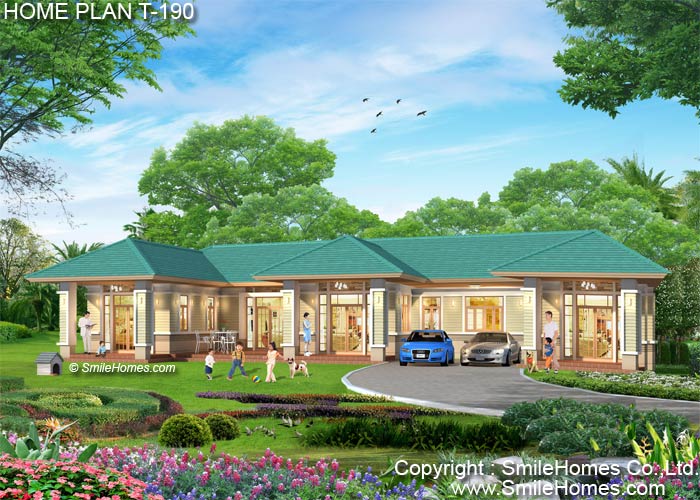 | แบบบ้านชั้นเดียว T-190 4 ห้องนอน 4 ห้องน้ำ พื้นที่ใช้สอย 240 ตร.ม. ตัวบ้านกว้าง 24.20 ม. ลึก 14.20 ม. ที่ดินขนาด 130 ตร.ว.ขึ้นไป ค่าก่อสร้างประมาณ 2.9 - 3.8 ล้านบาท ค่าแบบพิมพ์เขียว 5 ชุดพิเศษ 49,900 บาท ( จากราคาปกติ 90,000 บาท) ค่าจัดส่งฟรี |