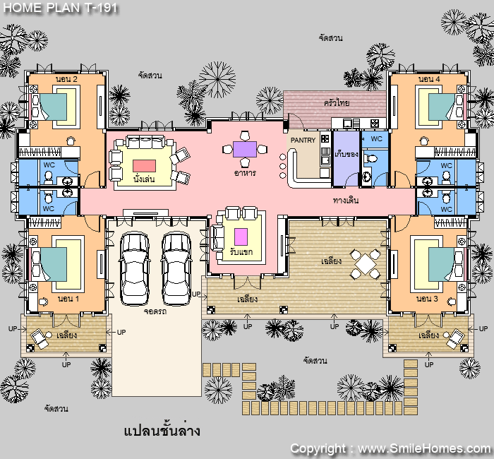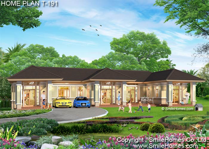 | แบบบ้านชั้นเดียว T-191 4 ห้องนอน 5 ห้องน้ำ พื้นที่ใช้สอย 260 ตร.ม. ตัวบ้านกว้าง 24.20 ม. ลึก 14.70 ม. ที่ดินขนาด 132 ตร.ว.ขึ้นไป ค่าก่อสร้างประมาณ 3.1 - 4.0 ล้านบาท ค่าแบบพิมพ์เขียว 5 ชุดพิเศษ 49,900 บาท ( จากราคาปกติ 90,000 บาท) ค่าจัดส่งฟรี |