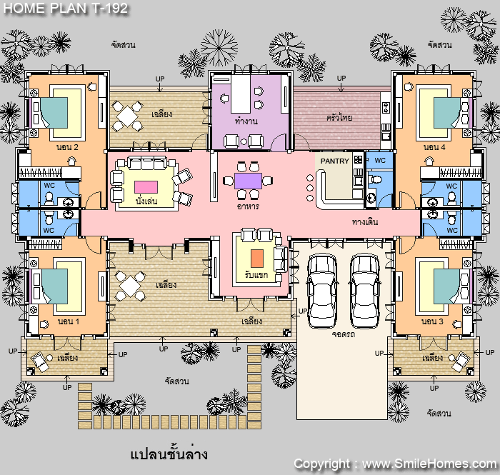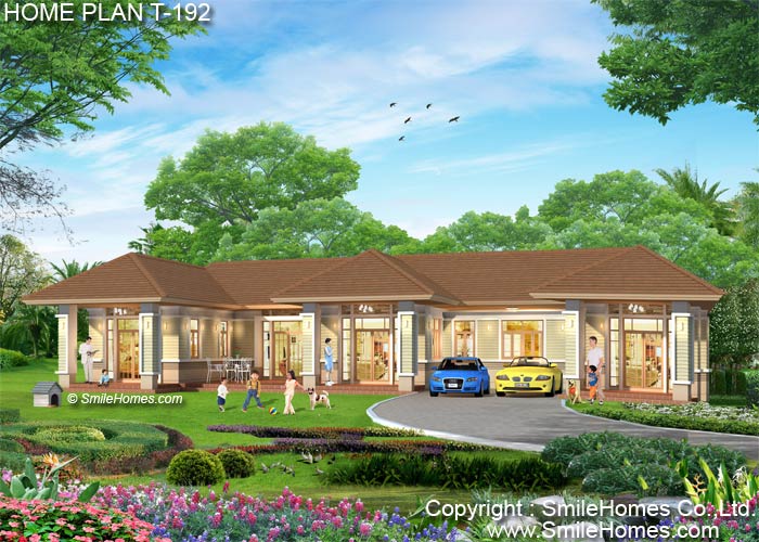 | แบบบ้านชั้นเดียว T-192 4 ห้องนอน 5 ห้องน้ำ พื้นที่ใช้สอย 305 ตร.ม. ตัวบ้านกว้าง 24.20 ม. ลึก 15.70 ม. ที่ดินขนาด 140 ตร.ว.ขึ้นไป ค่าก่อสร้างประมาณ 3.7 - 4.6 ล้านบาท ค่าแบบพิมพ์เขียว 5 ชุดพิเศษ 49,900 บาท ( จากราคาปกติ 95,000 บาท) ค่าจัดส่งฟรี |