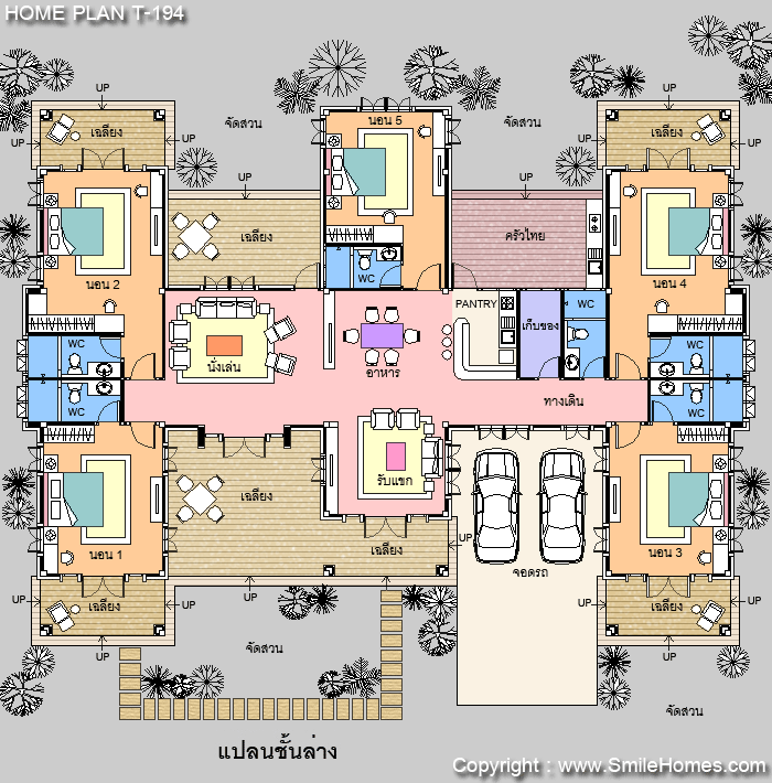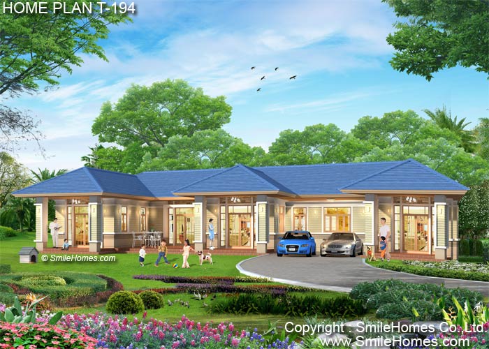 | แบบบ้านชั้นเดียว T-194 5 ห้องนอน 6 ห้องน้ำ พื้นที่ใช้สอย 332 ตร.ม. ตัวบ้านกว้าง 24.20 ม. ลึก 17.70 ม. ที่ดินขนาด 153 ตร.ว.ขึ้นไป ค่าก่อสร้างประมาณ 4.0 - 5.0 ล้านบาท ค่าแบบพิมพ์เขียว 5 ชุดพิเศษ 54,900 บาท ( จากราคาปกติ 100,000 บาท) ค่าจัดส่งฟรี |
