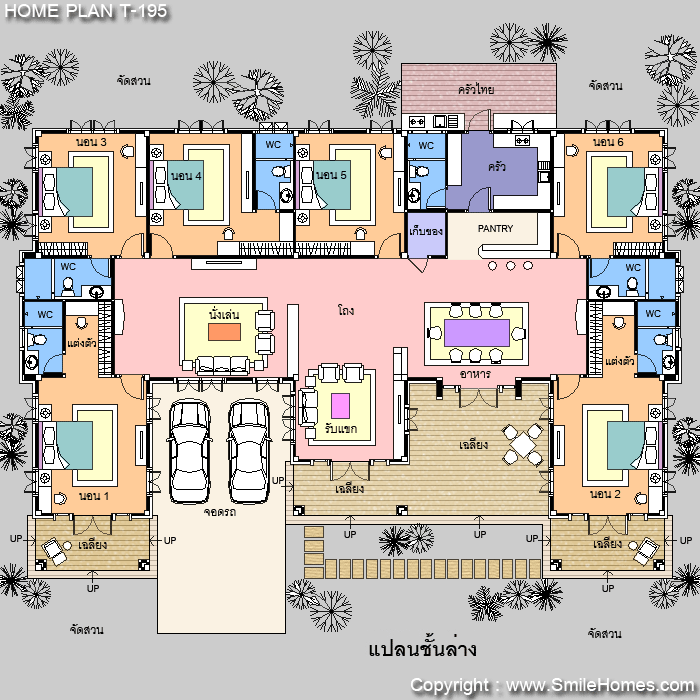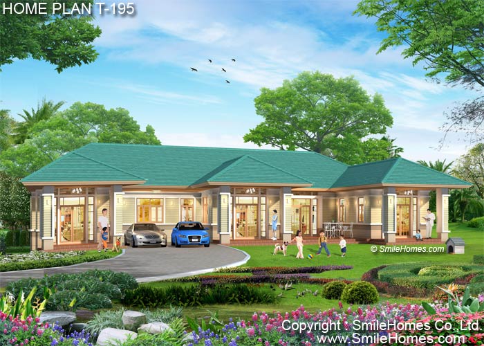| แบบบ้านชั้นเดียว T-195 6 ห้องนอน 6 ห้องน้ำ พื้นที่ใช้สอย 340 ตร.ม. ตัวบ้านกว้าง 24.20 ม. ลึก 16.20 ม. ที่ดินขนาด 145 ตร.ว.ขึ้นไป ค่าก่อสร้างประมาณ 4.1 - 5.1 ล้านบาท ค่าแบบพิมพ์เขียว 5 ชุดพิเศษ 54,900 บาท ( จากราคาปกติ 100,000 บาท) ค่าจัดส่งฟรี |