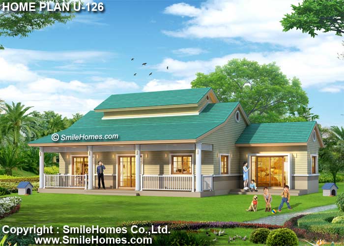| แบบบ้านชั้นเดียว U-126 3 ห้องนอน 3 ห้องน้ำ พื้นที่ใช้สอย 152 ตร.ม. ขนาดตัวบ้านกว้าง 16.20 ม. ลึก 10.80 ม. ที่ดินขนาด 75 ตร.ว.ขึ้นไป ค่าก่อสร้างประมาณ 1.9 - 2.4 ล้านบาท ค่าแบบพิมพ์เขียว 5 ชุดพิเศษ 19,900 บาท ( จากราคาปกติ 70,000 บาท) ค่าจัดส่งฟรี |