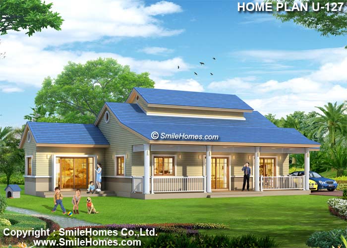 | แบบบ้านชั้นเดียว U-127 3 ห้องนอน 3 ห้องน้ำ ที่จอดรถ 2 คัน พื้นที่ใช้สอย 192 ตร.ม. ขนาดตัวบ้านกว้าง 21.30 ม. ลึก 12.80 ม. ที่ดินขนาด 105 ตร.ว.ขึ้นไป ค่าก่อสร้างประมาณ 2.3 - 2.9 ล้านบาท ค่าแบบพิมพ์เขียว 5 ชุดพิเศษ 37,900 บาท ( จากราคาปกติ 75,000 บาท) ค่าจัดส่งฟรี |