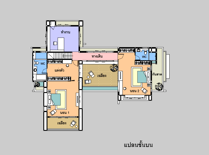 แบบบ้าน M-206 บ้านสไตล์ Modern รูปทรงสวยงาม โดดเด่น มีเอกลักษณ์เฉพาะตัว ให้ความรู้สึกโปล่งโล่ง ร่มรื่น เย็นสบาย เป็นบ้าน 2 ห้องนอน 3 ห้องน้ำ ที่จอดรถ 2 คัน ตัวบ้านมีเฉลียงด้านหน้ายาวตลอดอาคาร เข้าสู่ภายในซึ่งเป็นห้องรับแขกขนาดใหญ่ โปร่งโล่ง ต่อเนื่องไปยังส่วนทานอาหาร มีห้องครัว แยกเป็นสัดส่วน พร้อมห้องน้ำ ภายนอกมี พื้นที่ด้านหน้าสามารถทำสระว่ายน้ำ หรือจัดสวนได้ มีห้องคนใช้ และห้องเก็บของ ชั้นบนมีเฉลียงนั่งเล่น นอกชาน ขนาดใหญ่ ที่สามารถปรับเป็นห้องนอนเพิ่มได้ มีห้องนอนใหญ่ สำหรับความเป็นส่วนตัว พร้อมห้องแต่งตัวแบบ Walk-in Closet พร้อมห้องน้ำส่วนตัว ที่มีสุขภัณฑ์ครบชุด และระเบียงใหญ่ด้านหน้า และห้องนอน 2 พร้อมห้องน้ำส่วนตัว มีห้องทำงาน ที่สามารถปรับเป้นห้องนอนหรือห้องพระได้ รายละเอียดแบบบ้าน M-206 ชั้นสอง