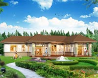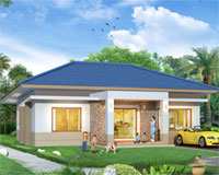 แบบบ้านชั้นเดียว P-120 บ้าน 3 ห้องนอน 3 ห้องน้ำ พื้นที่ใช้สอย 124 ตร.ม. งบก่อสร้าง 1.4 - 1.9 ล้านบาท |